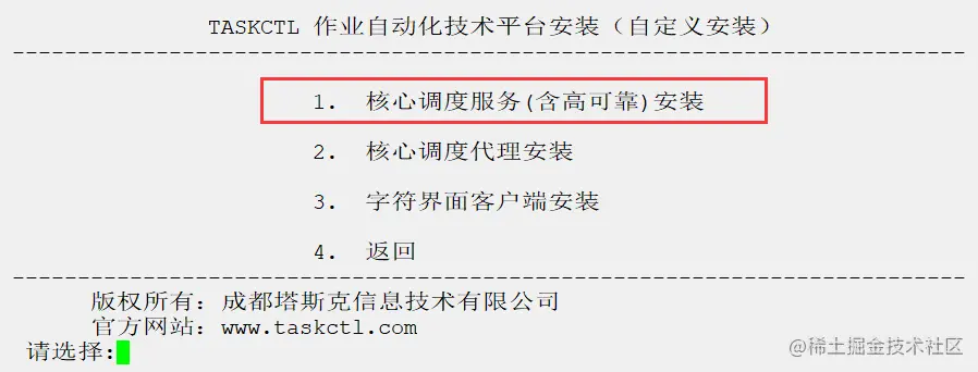 3. 选择1-核心调度服务,开始安装