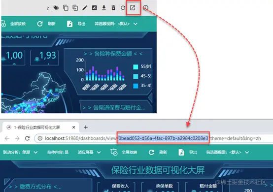 如果你想在新的浏览器窗口中打开仪表板内容,只需设置一个超链接,href设置为上述的URL即可。