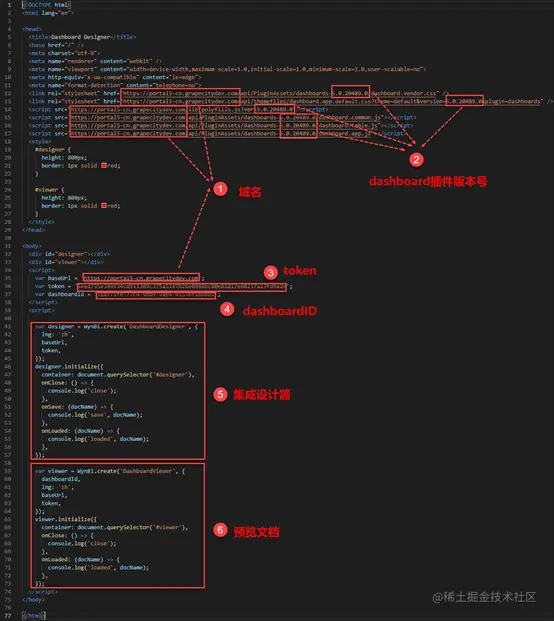 (6)引用代码,用于集成单个仪表板文档。