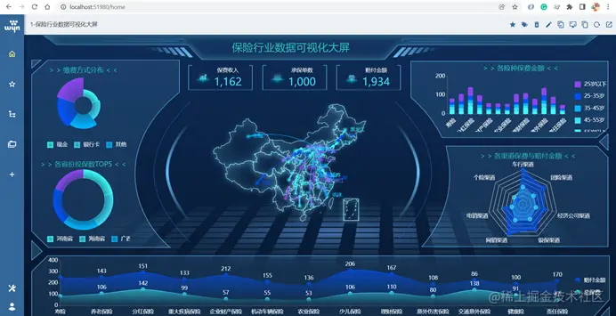 无论是.Net Core还是.NET 5或6 的项目整体都有强大的服务端资源来支持,适合开发大并发,高性能的业务系统,如果实现BI 可视化大屏功能,现有的市面上的工具也已经很完善了,我们在考虑为项目中增加这一【门面】的功能时,不妨可以考虑引用现成的工具,将开发资源集中在核心业务上面,从而实现高效的跨平台项目的交付。