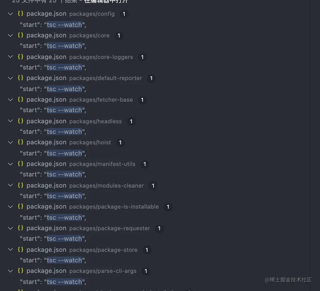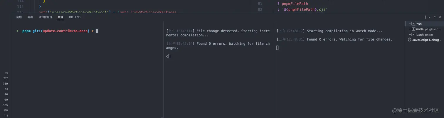 同时目前基本上 pnpm 下大部分正在维护的子包使用 typescipt 在开发,笔者之前还给一些库补上了 tsc --watch 命令: