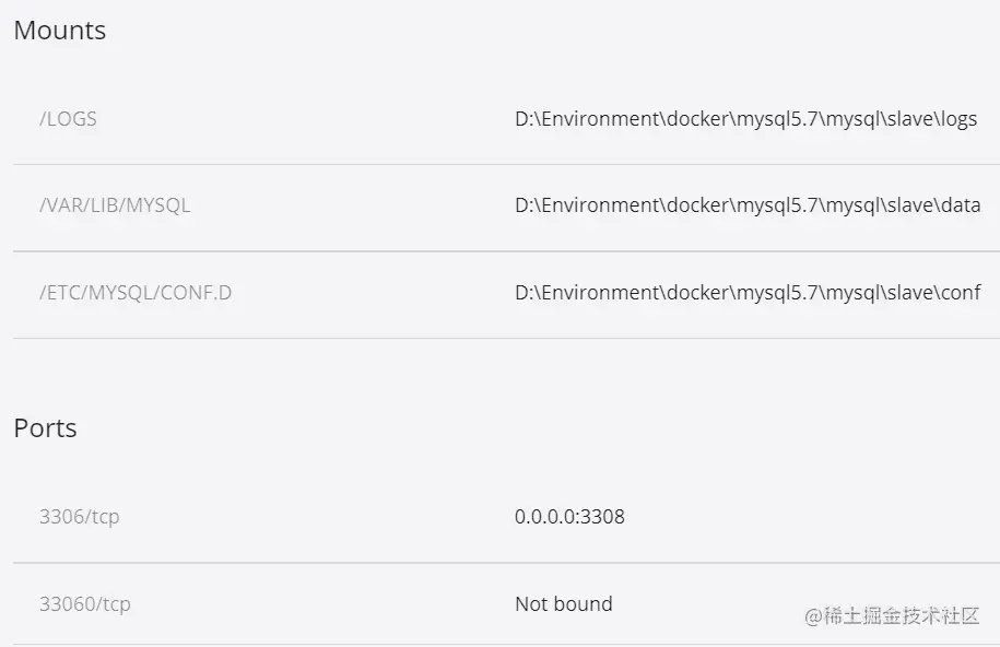docker run -d -p 3308:3306 -v D:\Environment\docker\mysql5.7\mysql\slave\conf:/etc/mysql/conf.d -v D:\Environment\docker\mysql5.7\mysql\slave\logs:/logs -v D:\Environment\docker\mysql5.7\mysql\slave\data:/var/lib/mysql --name mysql-Slave -e MYSQL_ROOT_PASSWORD=root mysql:5.7