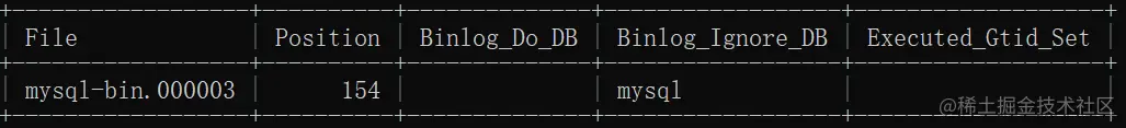 记下File:mysql-bin.000003以及Position:154