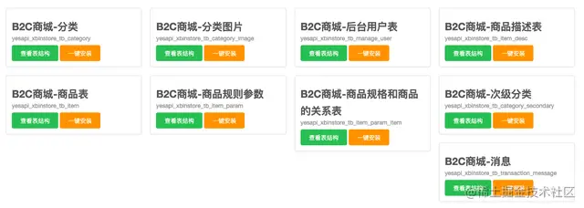 为了方便设计数据模型,YesApi收集了开源项目上累计9000张数据库表,可以直接搜索你要数据表结构,然后直接点击安装。