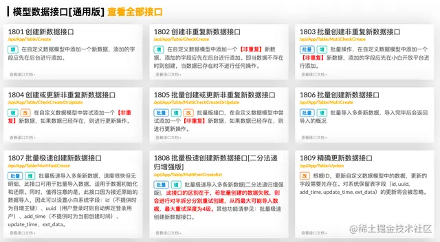 随后,可以查看模型的数据,进行数据的添加、删除、批量更新、导入、导出、格式化显示等多种操作。
