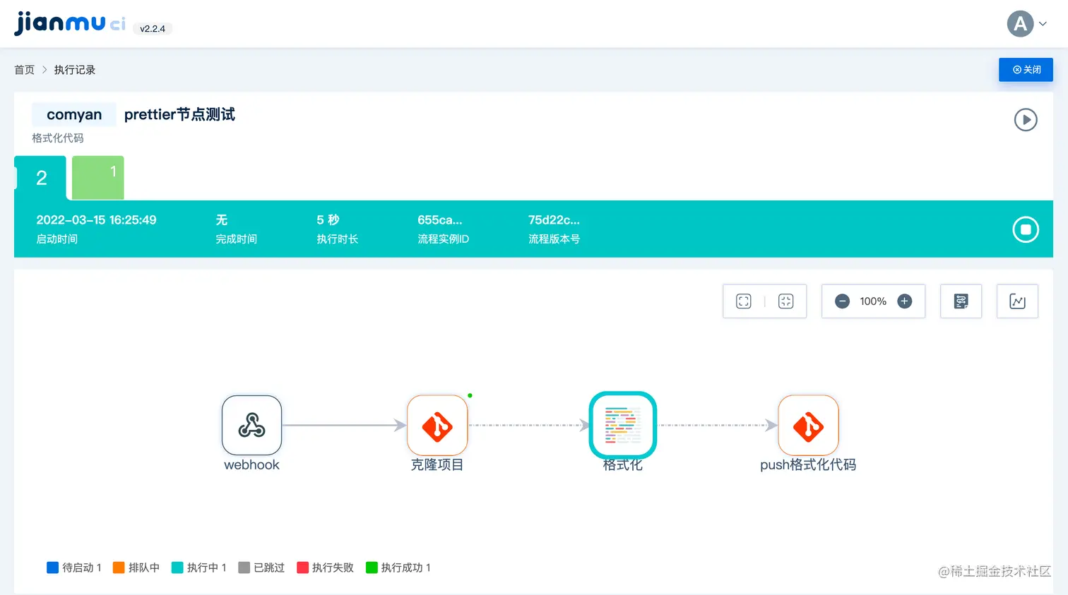 目前建木CI已将prettier规范集成在节点中,每一个prettier节点与prettier官方维护的版本对应。这样意味着我们可以使用不同版本的prettier来保证对前端代码风格上的统一。上面提到的,在团队开发过程中,开发人员使用不同的IDE和prettier配置,造成代码风格难以统一的问题,也得到很好的规避。因为建木CI进行格式化的流程不是在开发人员的编码过程中,而是在真正将代码推送到远程仓库后,才会对它进行格式化。这样一来开发人员根本不需要在意推送到远程仓库的代码格式有多乱,甚至不需要在IDE中安装任何代码格式化的插件。因为只要再次从远程仓库拉取代码时,代码均已被格式化。有建木CI做了这些事,开发者可以将更多的精力放在其业务逻辑上。