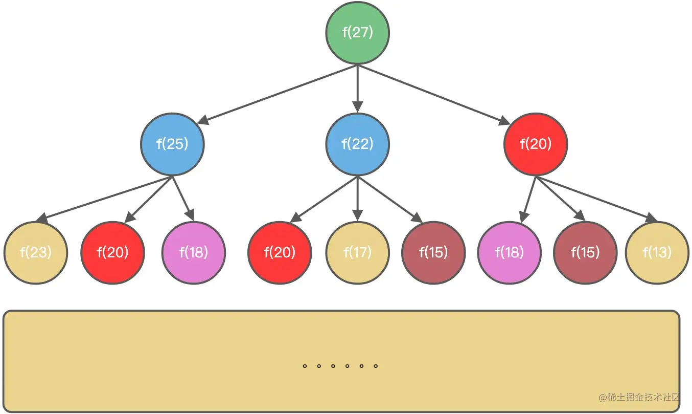 但是递归算法的复杂度实在是太高了,做了很多重复的计算,很明显不可取。
