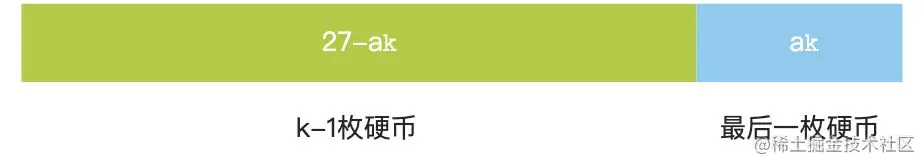 - 我们不关心前面的K-1枚硬币是怎样拼出27-a𝚔的,甚至不知道a𝚔和K是多少,但能确定前面的硬币拼出了27-a𝚔