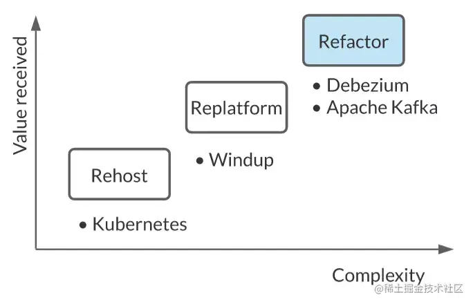 - 重构(Refactoring):今天,许多应用程序进行现代化的重点是将单体的、企业内部的应用迁移到支持更快速发布周期的云原生微服务架构。这涉及到重构和重新架构你的应用程序,这也是本文的重点。