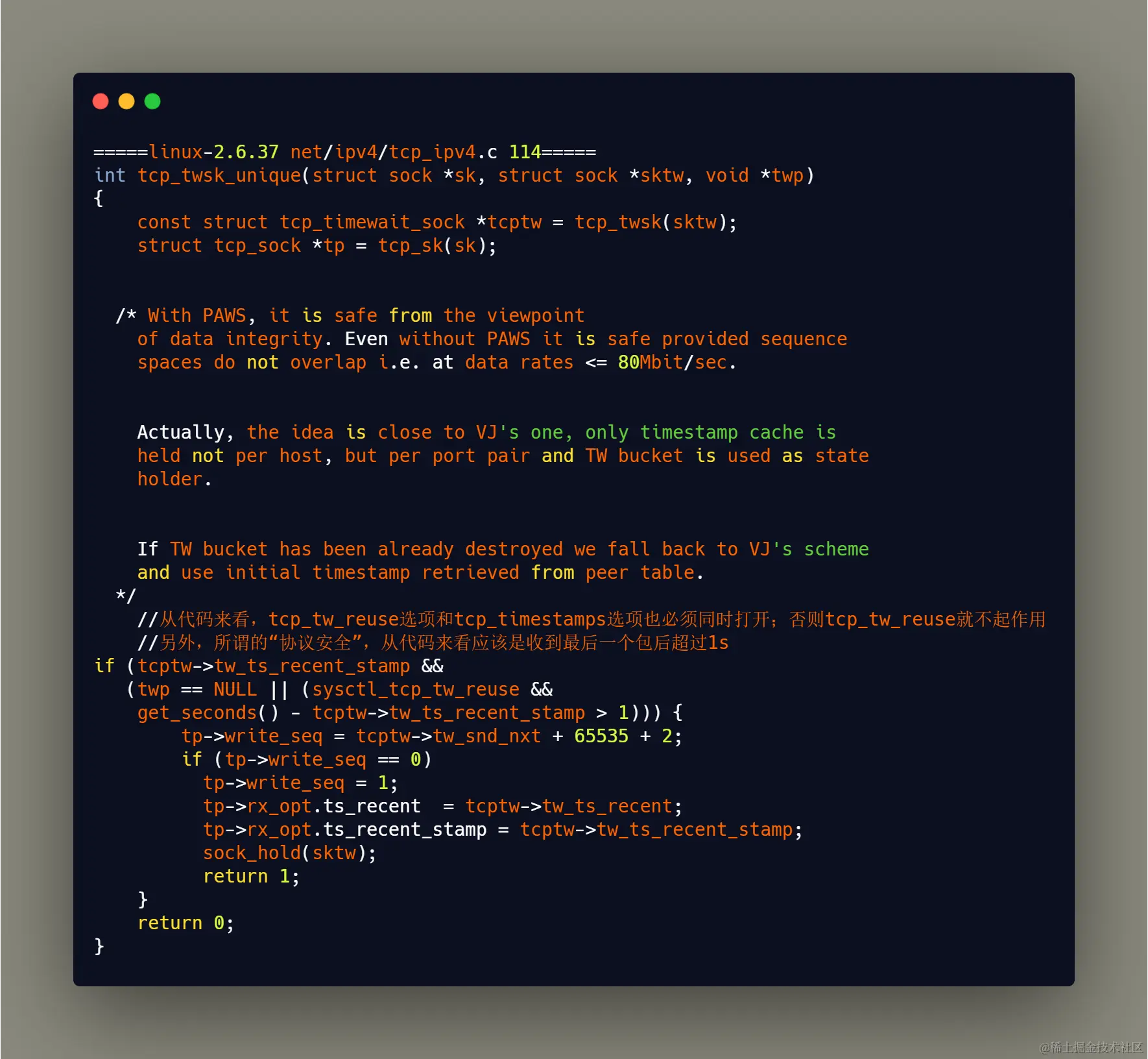 使用这个选项有个前提,需要打开TCP时间戳的支持net.ipv4.tcp_time stamps=1,在RFC1323中,为了保证TCP的高可用,引入了两个4字节的时间戳选项,用于记录 TCP 发送方的当前时间戳和从对端接收到的最新时间戳。这就有意思了,之前说的2MSL就不存在了,因为如果重复的数据包会因为时间戳的过期而被丢弃