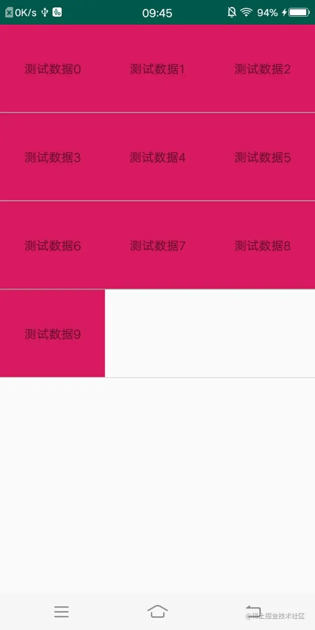 表格布局:mRecyclerView.setLayoutManager(new GridLayoutManager(this, 3));