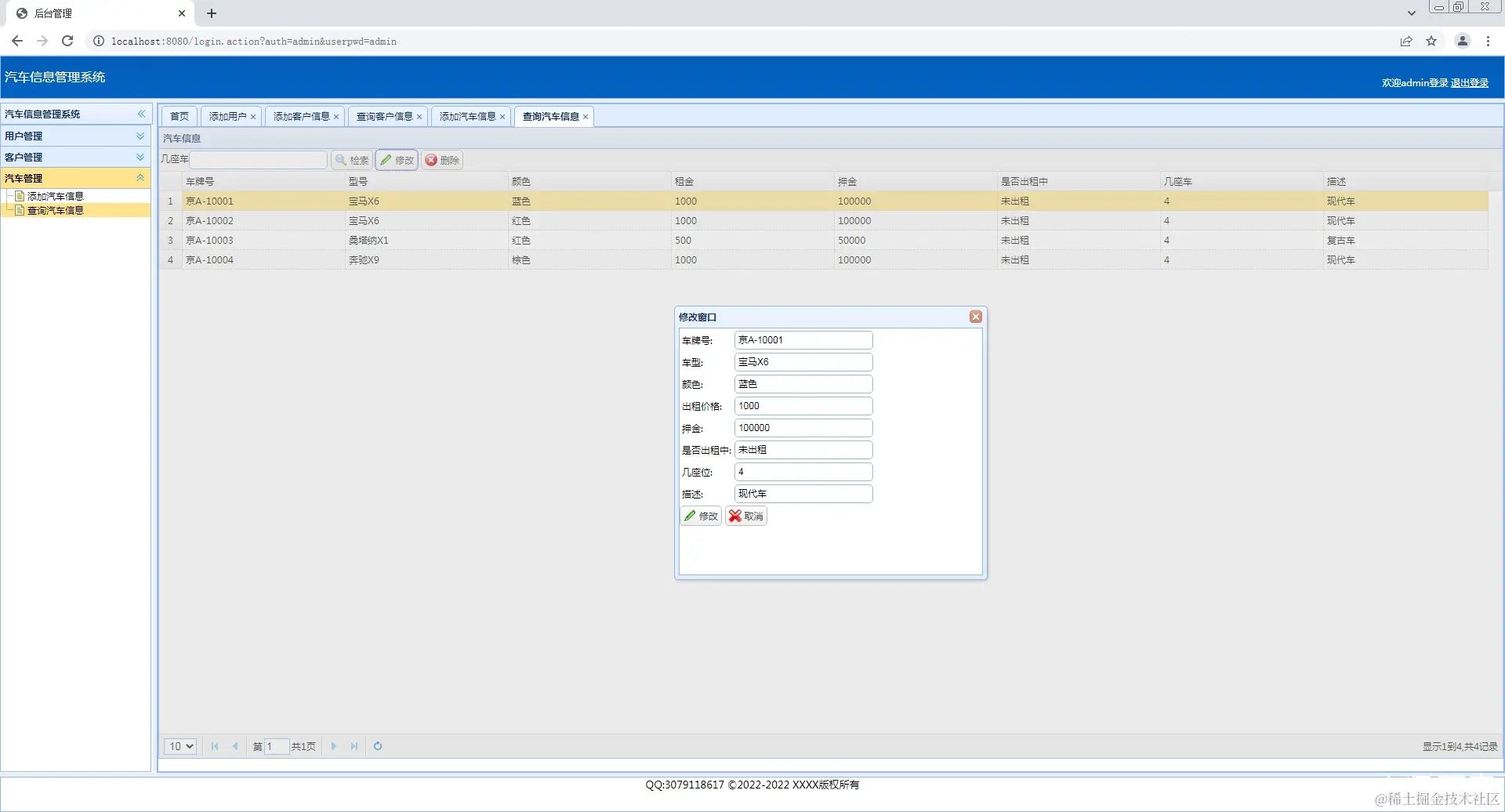 Java+SSM+easyui+Jsp+Mysql实现Web汽车信息管理系统