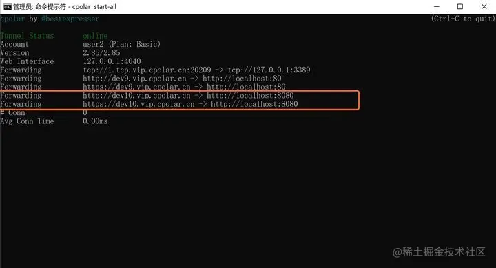 如果cpolar的显示如下所示,则说明cpolar的配置文件无误: