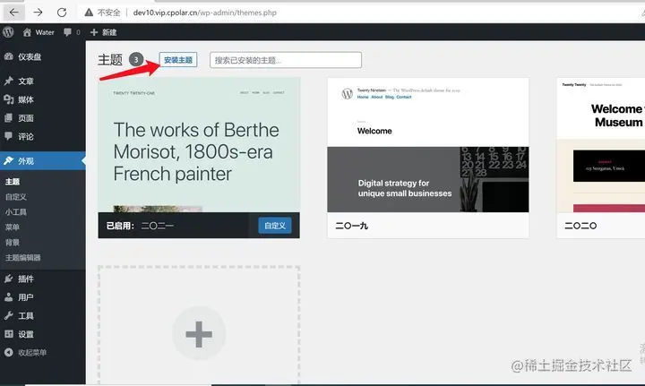 为了检查我们选择的模板是不是我们预期中的样子,可以在浏览器中访问之前通过cpolar生成的外网URL地址(此处例子沿用之前文章中建立的链接)“dev10.vip.cpolar.cn/”,就可以看到这个模板下,网页主题的显示情况。