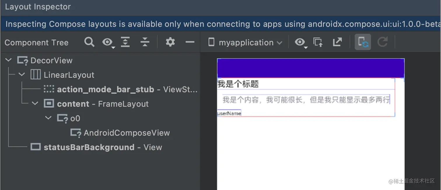 通过android studio 的LayoutInspector看到ComposeActivity的布局结构