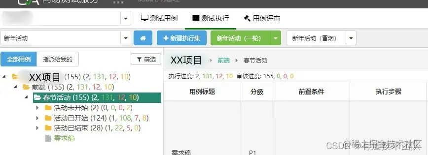 根据提测时间,决定用例执行顺序与分配: 如下图拆分的测试计划,后台配置(星火)与用户端提测时间不一致,结合两个提测时间点,我们利用用户端提测前的时间,先执行后台配置的用例,这样即使是分步提测,我们也能确保每次提测时测试资源能跟上。