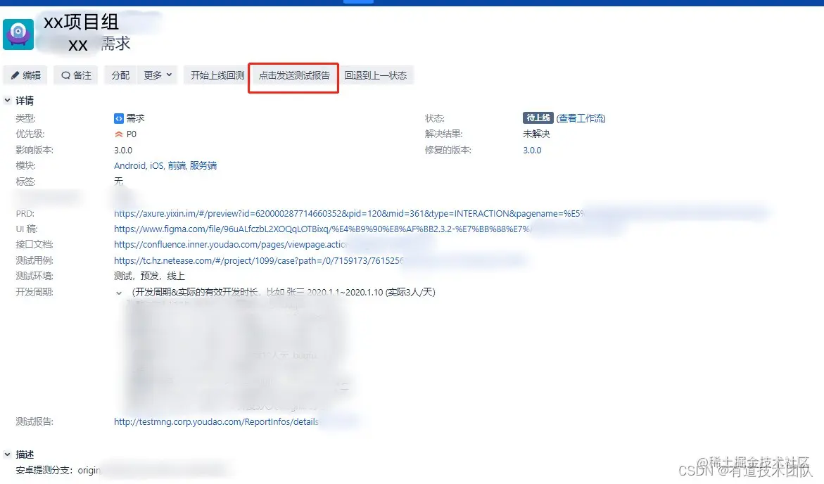 结合jira的使用流程,可一键生成测试报告并同步质量平台。