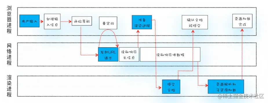 - 这里分配渲染进程需要补充下,Chrome默认会为每一个页面分配一个渲染进程,但是相同站点(根域名和协议相同)会运行在同一个渲染进程中。