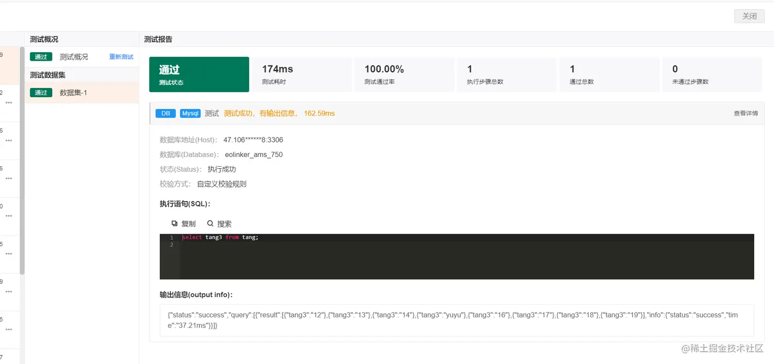 而逻辑上仍是一个数据库,为用户提供统一的访问入口,实现对分布在网络节点上的数据的统一操作,即用户可以像使用传统集中式数据库一样使用分布式数据库,而不是分别操作多个数据库。在接口测试中数据库操作也是不可缺少的,使用Eolinker API接口测试工具进行数据库查询,查询结果如图2。