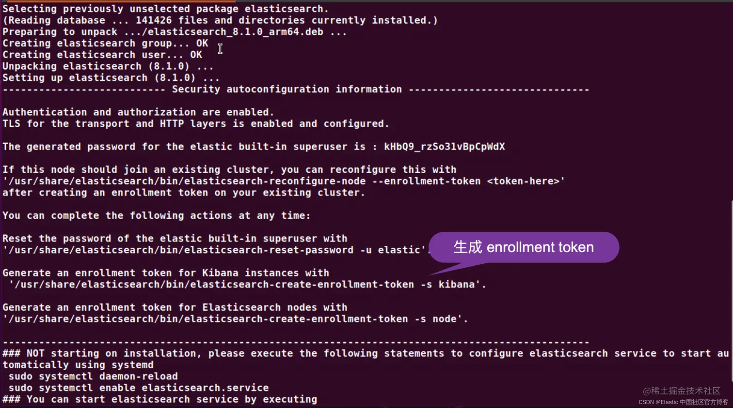 我们可以再回头看看文章 “Elasticsearch: 使用 Debian 安装包来安装 Elasticsearch 8.x” 里 Elasticsearch 服务被启动时的输出信息: