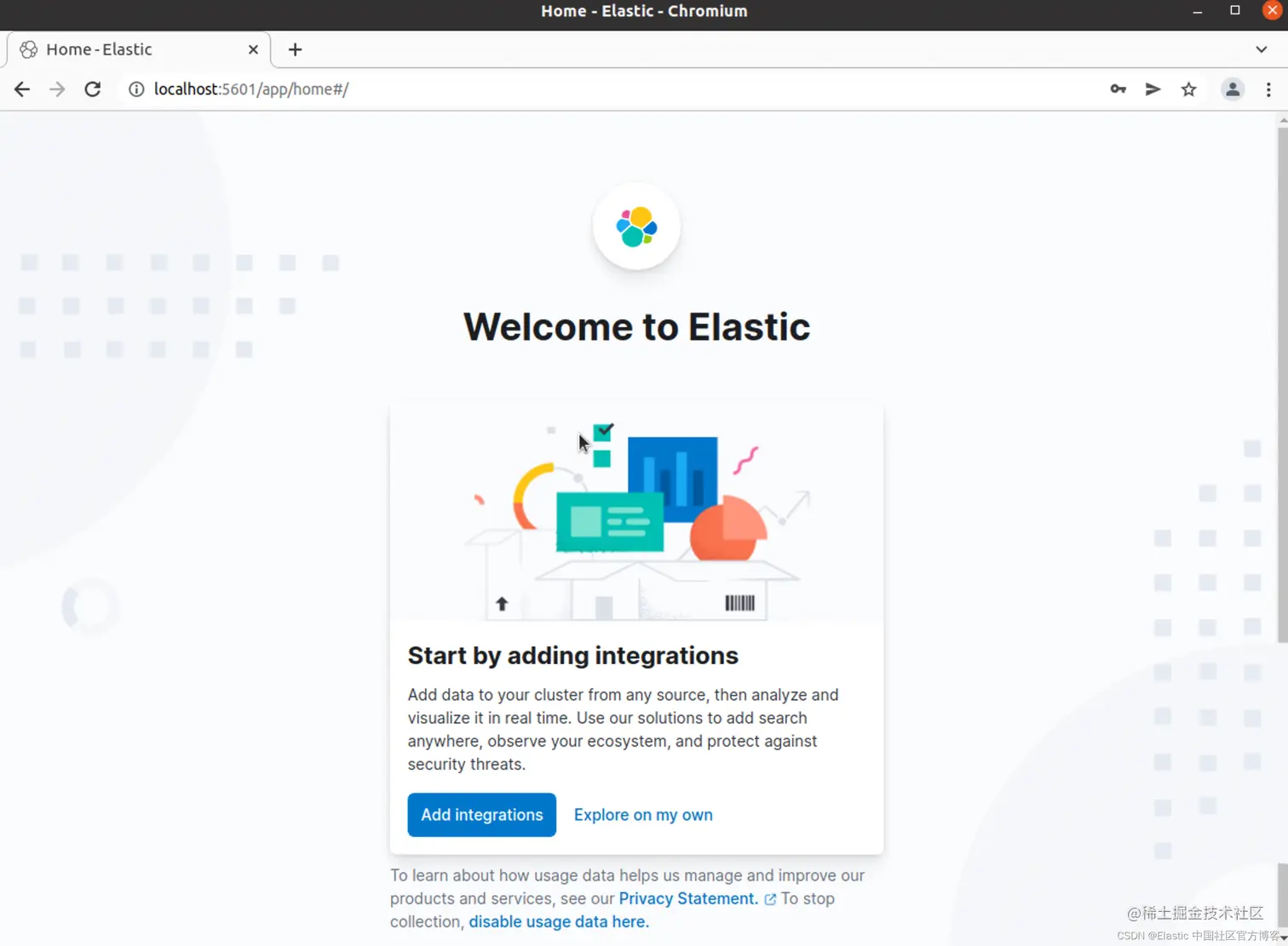 我们可以在浏览器中进行访问 http://localhost:5601: