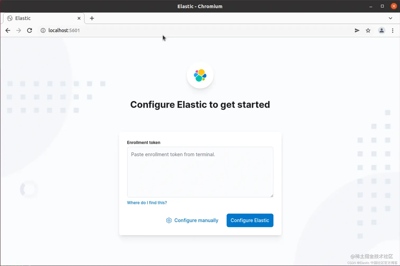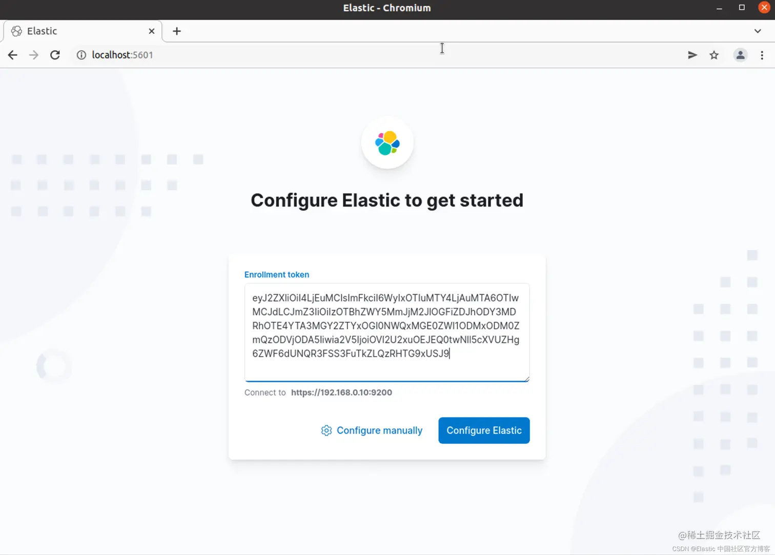 把获得的 token 填入到上面的框中,并点击 Configure Elastic: