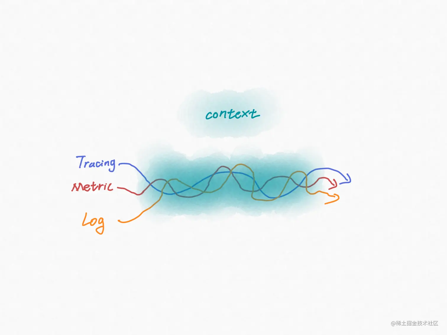 那么,如何做数据关联呢?说起来很容易,那就是做时间+空间的关联。在我们的统一数据平台上,由于数据是来自于各种观测工具的,虽然我们在数据格式上统一成了metric、log、trace,但不同工具的metric、log、trace的元数据截然不同,而如果我们在这个统一数据平台上去梳理和映射这些元数据的话,这将是庞杂、难维护、不可持续的。那该如何做呢?答案就是标准化。只有将标准化、结构化的数据喂给观测平台,观测平台才能从中发现巨大价值。统一数据平台只是在数据格式上进行了标准化,而要想将trace、metric、log关联还必须建立context的标准化,context就是数据的空间信息,再叠加上时间信息的关联就可以发挥真正的观测价值。
