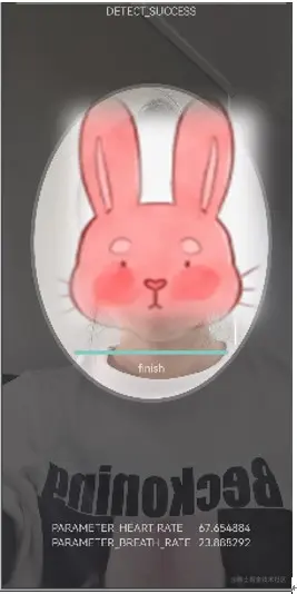 实时计算人脸健康信息以及人体关键健康信息,包括心率、呼吸率、面部健康状态、心率波形图信号等。