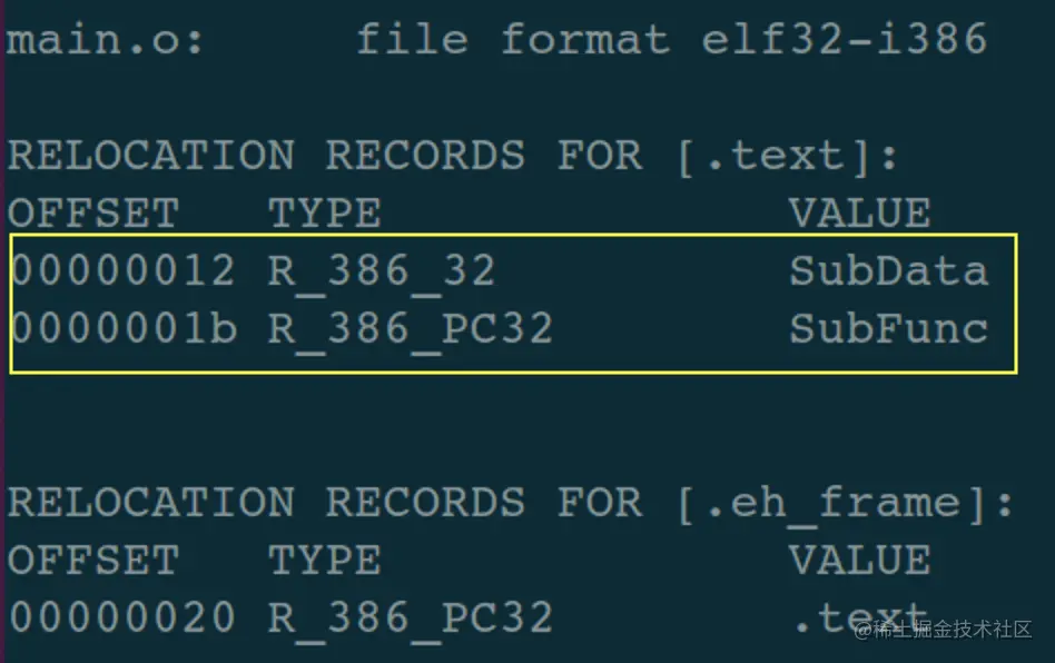 符号需要进行重定位,需要把这个符号在执行时刻的绝对寻址(虚拟地址),写入到 main