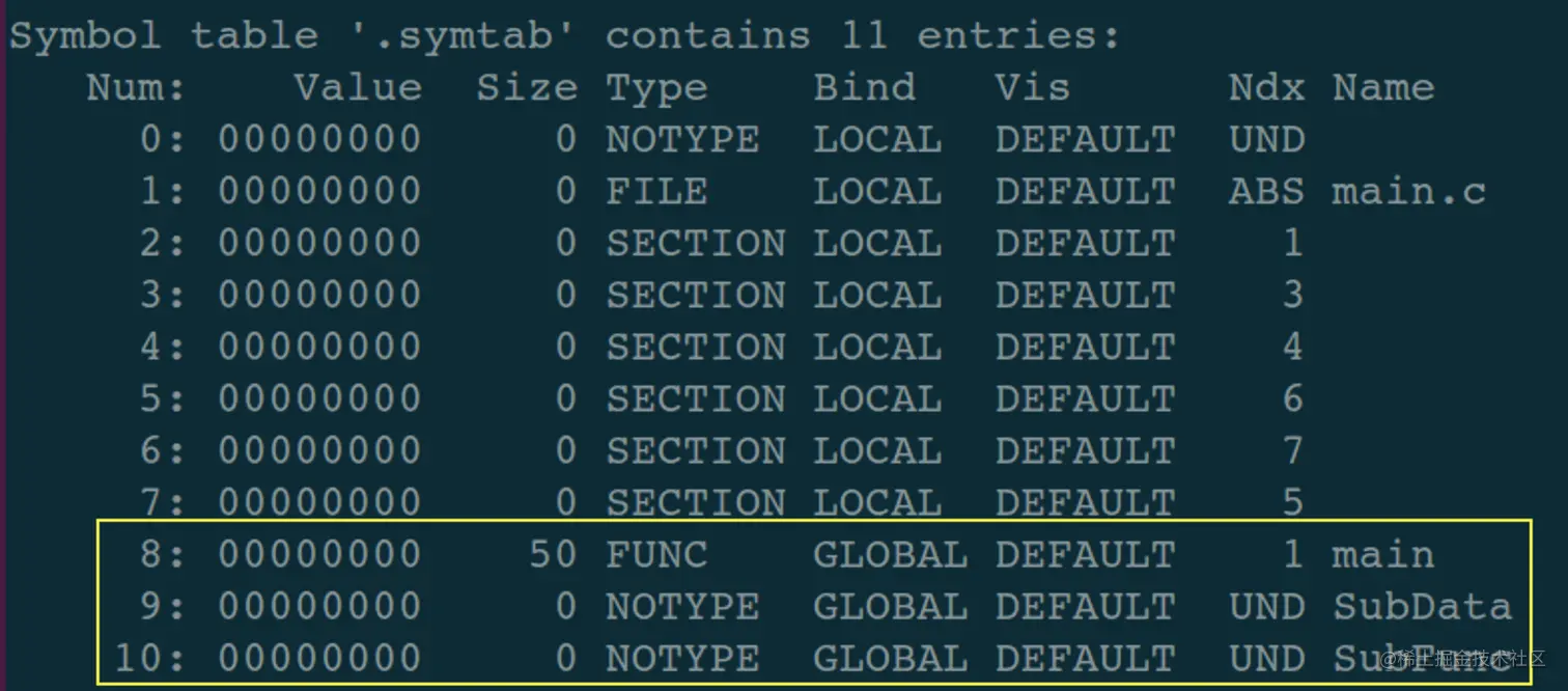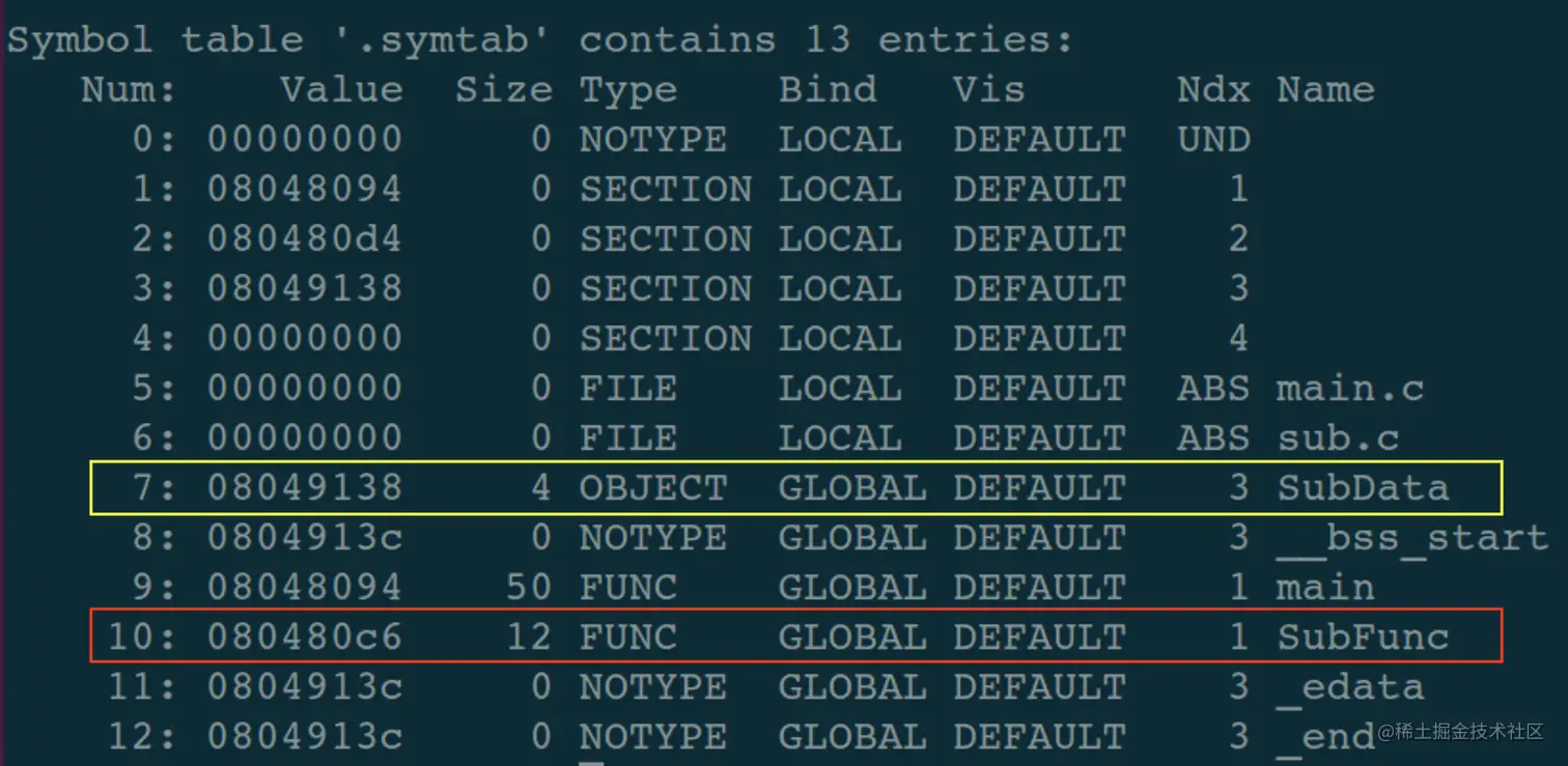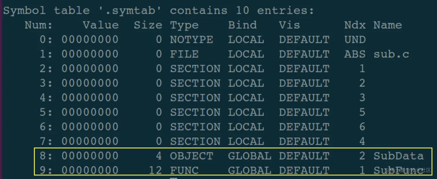 中的符号表,下面这张图(指令:readelf -s sub.o