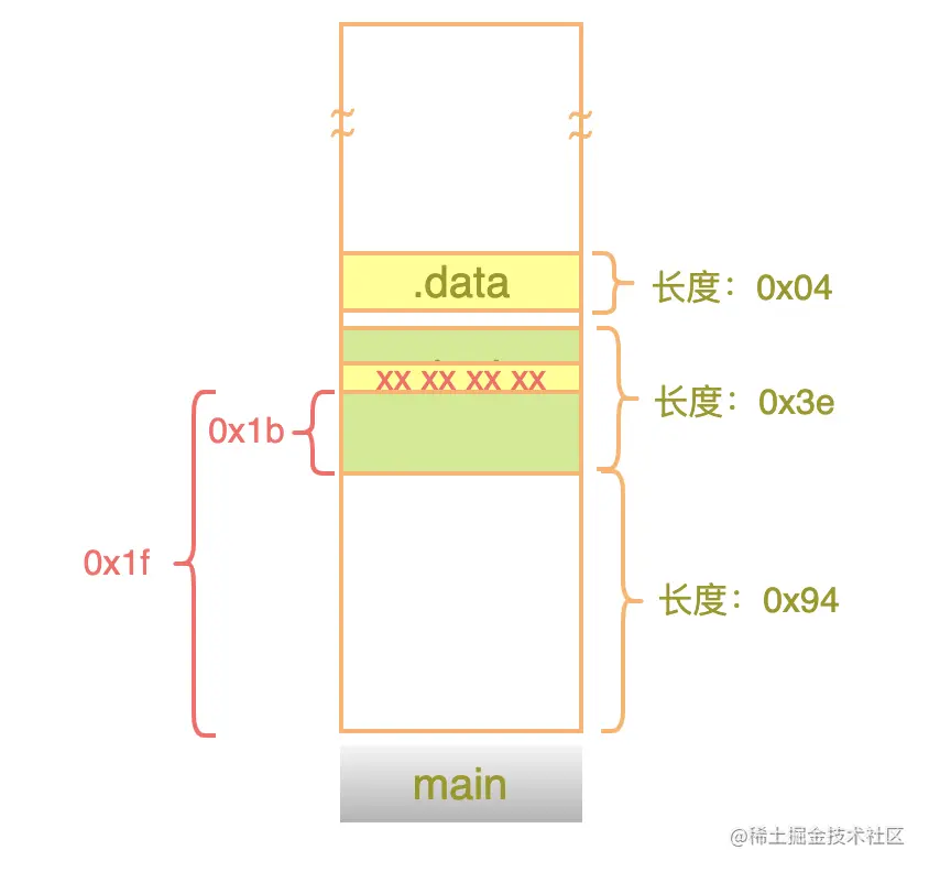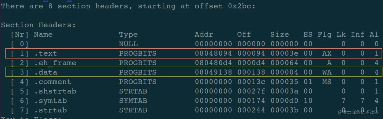 我们主要关心黄色的代码段和数据段就可以了,可以看出: