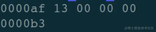 指令:od -Ax -t x1 -j 175 -N 4 main