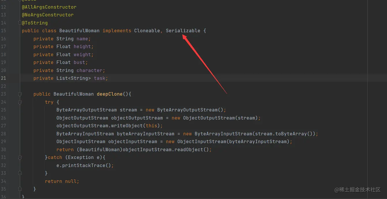 一.对原型类进行一个改造,加上了序列化接口Serializable, 它也是一个空接口,我们写了deepClone()方法,使用流和序列化的方式进行复制。