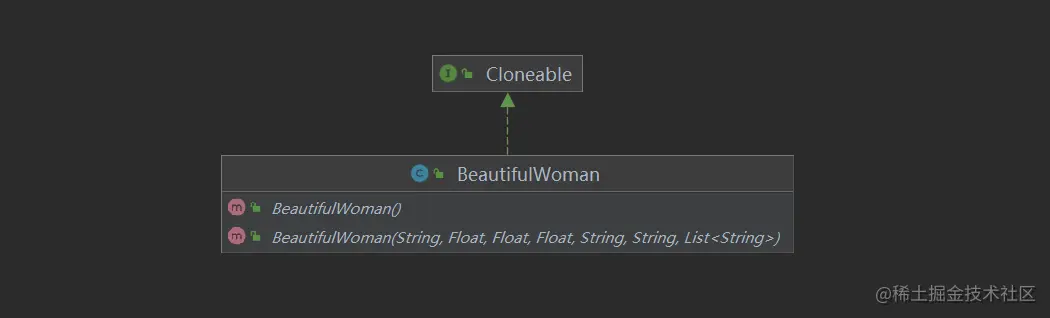 Java为我们内置了原型接口(Cloneable),如果要进行对象的拷贝,必须实现Cloneable接口,它是一个空接口,里面没有任何的方法,它只是一个规约而已,我们实现Cloneable接口只需要在类里面重写Object的clone() 方法,这样我们就可以进行对象的拷贝,注意:如果没有实现Cloneable接口,直接使用Object的clone()方法,那么将会抛出异常(CloneNotSupportedException),因为JVM里面识别该类没有实现Cloneable接口,不能安全的进行拷贝,我们看一下它们的实现关系