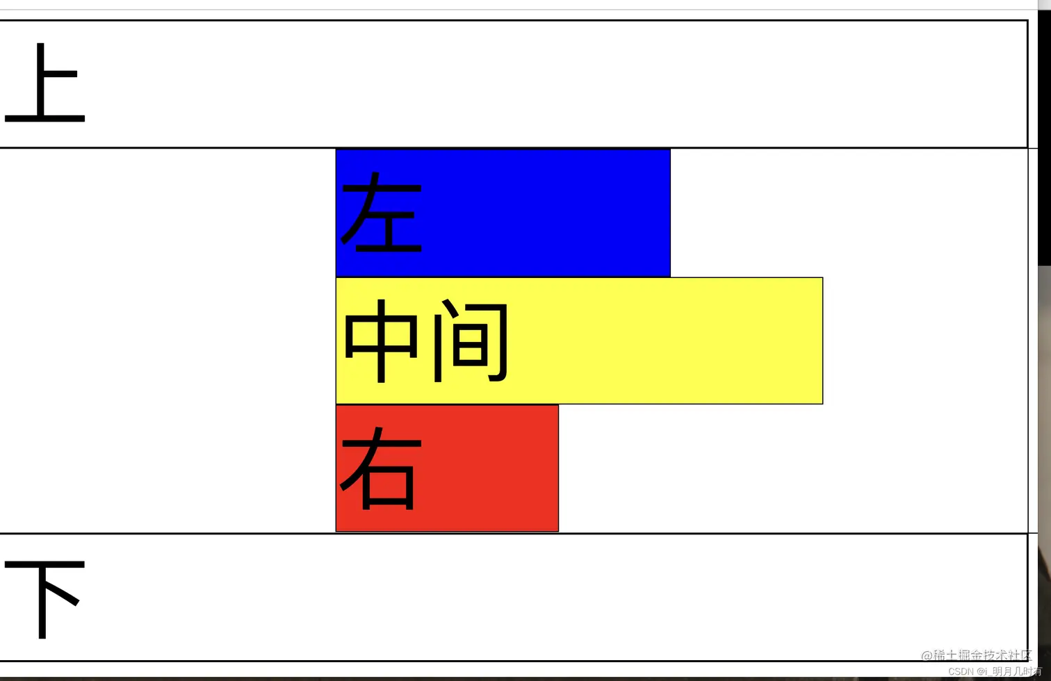 这里为什么要margin-100%呢?你可以想象本来这三个元素应该是在同一行的,但是由于center盒子宽度满了,强行把left和right挤到下一行了,但是其实他们应该排在center盒子的最右边,因为div盒子是center left right这个上下文顺序在html文档里写,