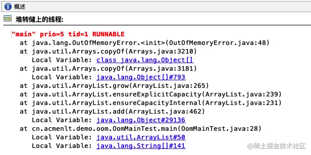 列举两个常用的功能,第一个是能看到触发 OOM 的线程堆栈,清晰得知程序溢出的原因