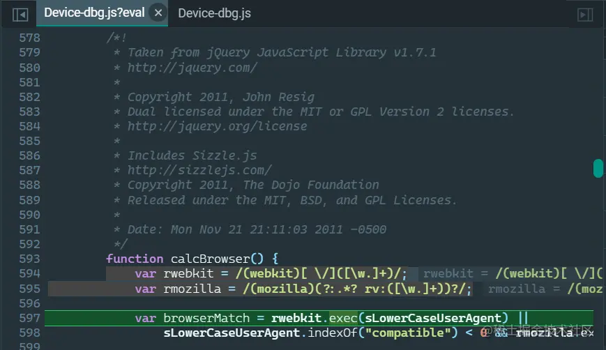 var rwebkit = /(webkit)[ \/]([\w.]+)/;