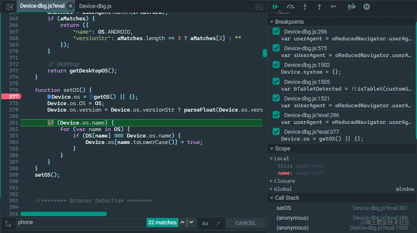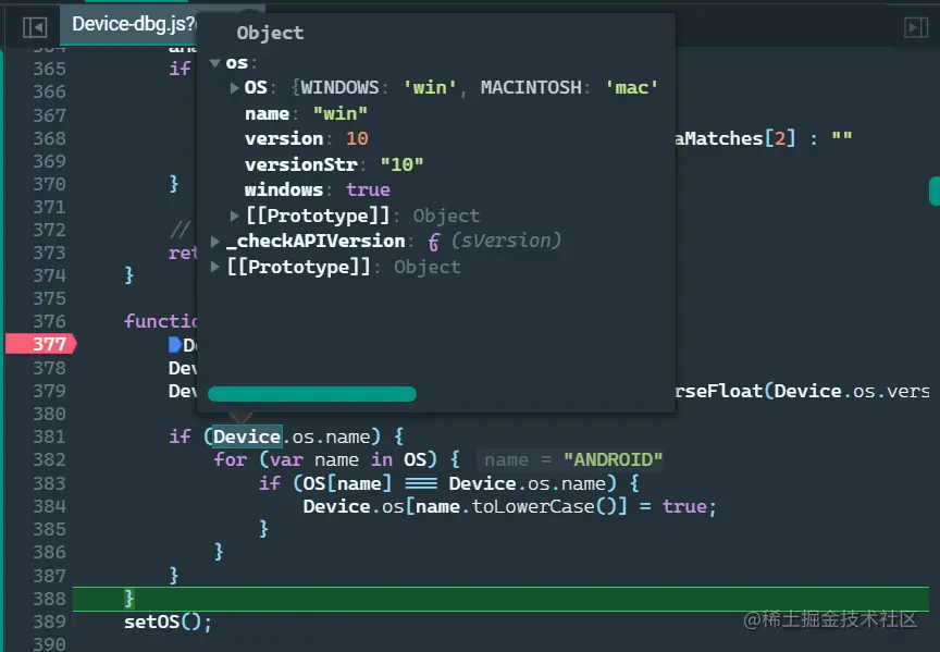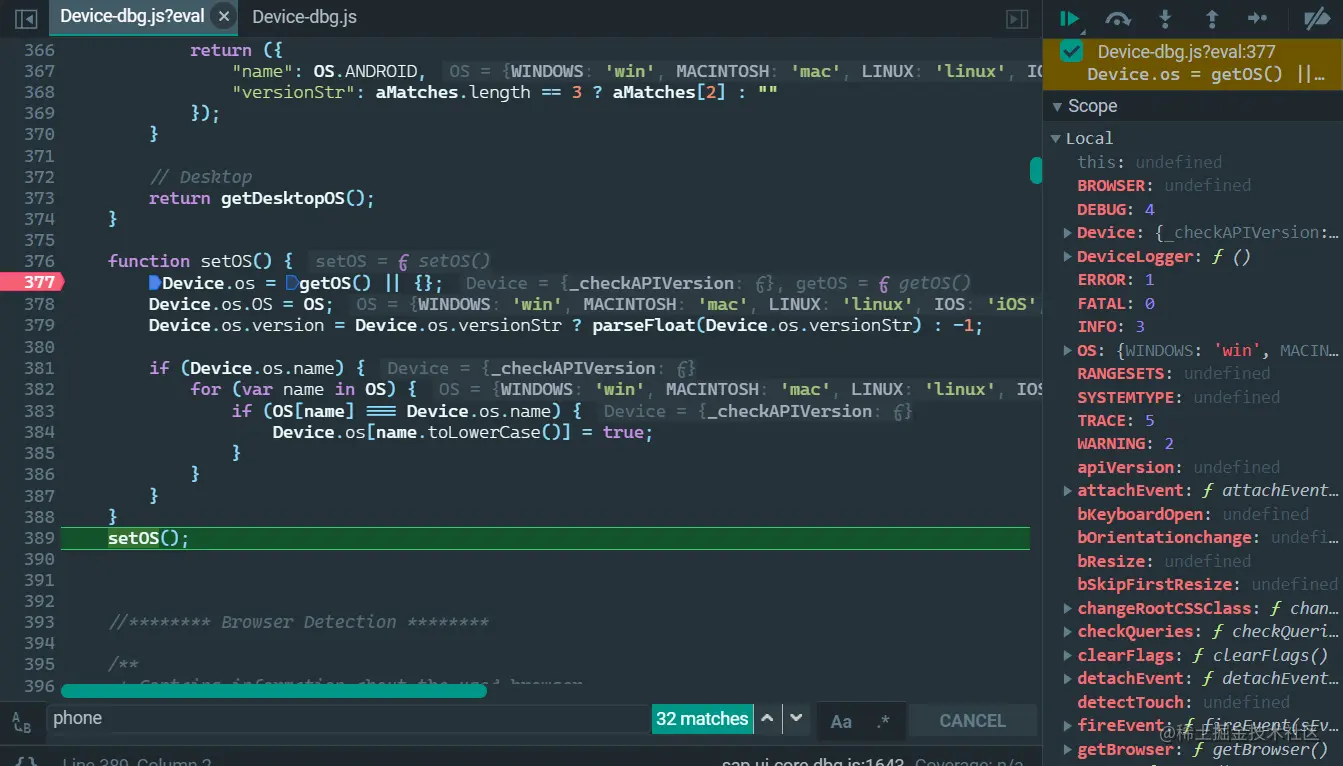 Device API 所在的 Device.js 文件被加载后,立即执行 setOS 方法: