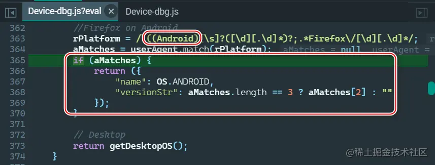 使用正则表达式匹配,如果发现有 Android 字符串,则说明当前的 SAP UI5 应用,运行在 Android 移动设备上。