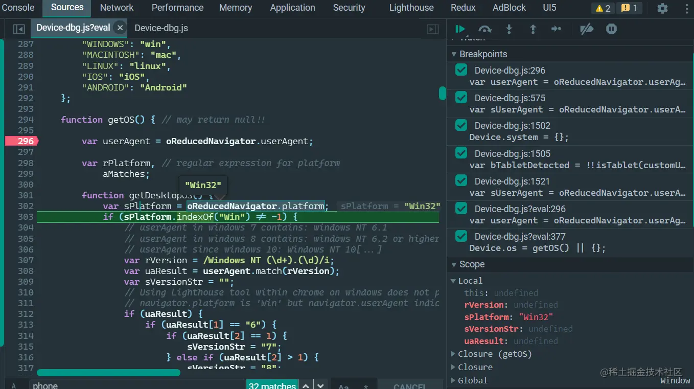 我用的是 Windows10 操作系统,platform 字段值为 Win32: