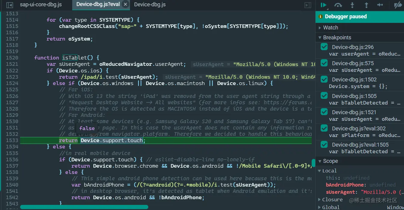从这里能够看出,SAP UI5 判断一个设备是 tablet 的逻辑为,如果该设备的操作系统是 windows 或者 mac 或者 Linux,那么如果它支持 touch 操作,就被看成是 tablet: