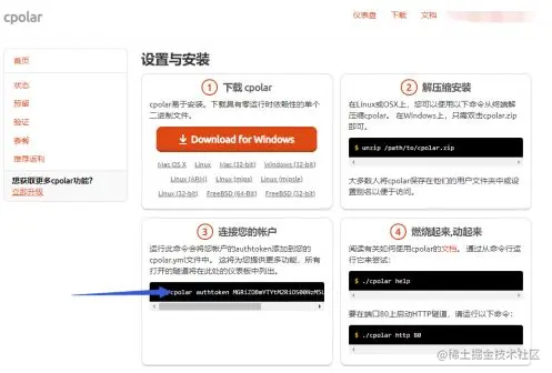 当确定cpolar安装成功后,我们需要输入cpolar的认证码,具体方式为登录cpolar官网,进行用户注册(仅对新用户,老用户在第一次输入认证码时已激活)然后在“仪表盘”中找到token码