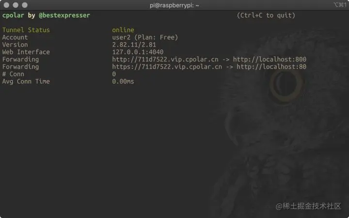 与所有软件一样,我们首先要做的,就是把cpolar安装到树莓派中。对于国内用户,我们可以使用一键安装脚本,即输入以下命令: