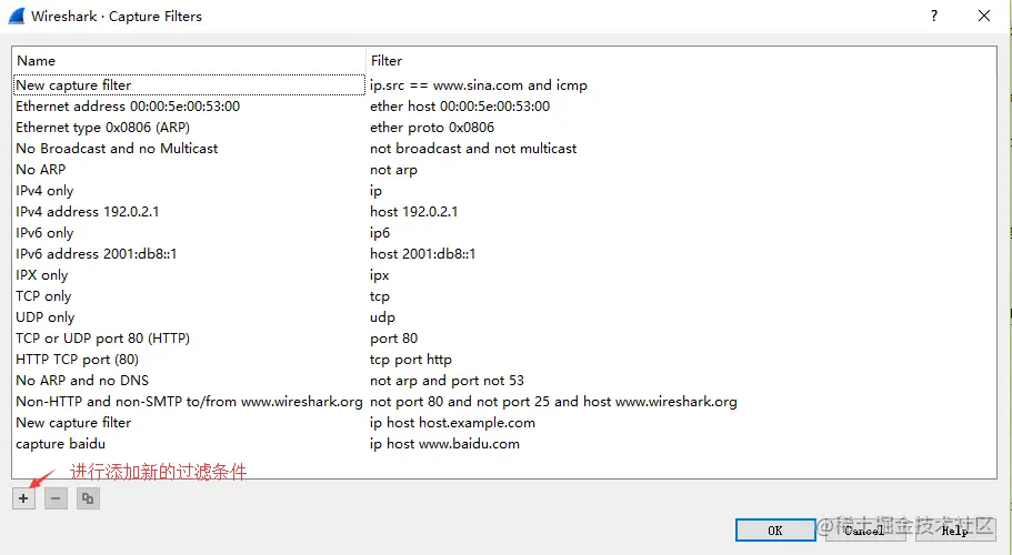 捕获过滤器的菜单栏路径为Capture --> Capture Filters。用于在抓取数据包前设置。