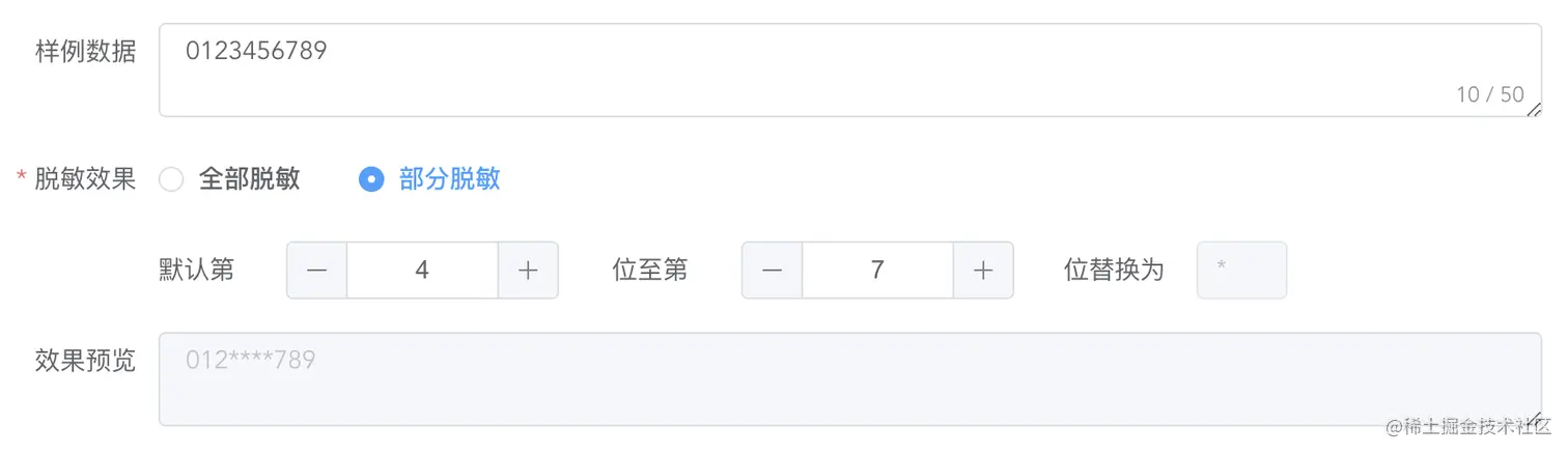 ruleType: 1, //全部脱敏1;部分脱敏2