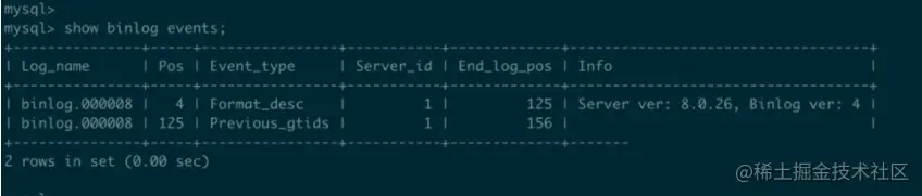 show binlog events;