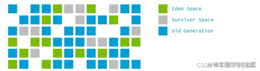 使用G1收集器时,Java堆的内存布局与其他收集器有很大差别,它将整个Java堆划分为多个大小相等的独立区域(Region),虽然还保留有新生代和老年代的概念,但新生代和老年代不再是物理隔阂了,它们都是一部分(可以不连续)Region的集合,例如: