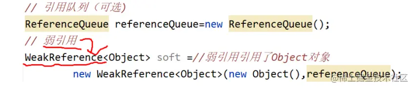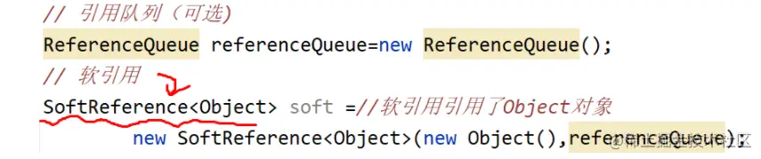 是一种相对强引用弱化一些的引用,可以让对象豁免一些垃圾收集,只有当JVM 认为内存不足时,才会去试图回收软引用指向的对象,JVM 会确保在抛出 OutOfMemoryError 之前,清理软引用指向的对象。