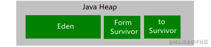 新生代是由:Eden、Form Survivor、To Survivor 三个区域组成的,它们内存默认占比是 8:1:1,如图所示: