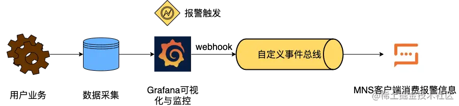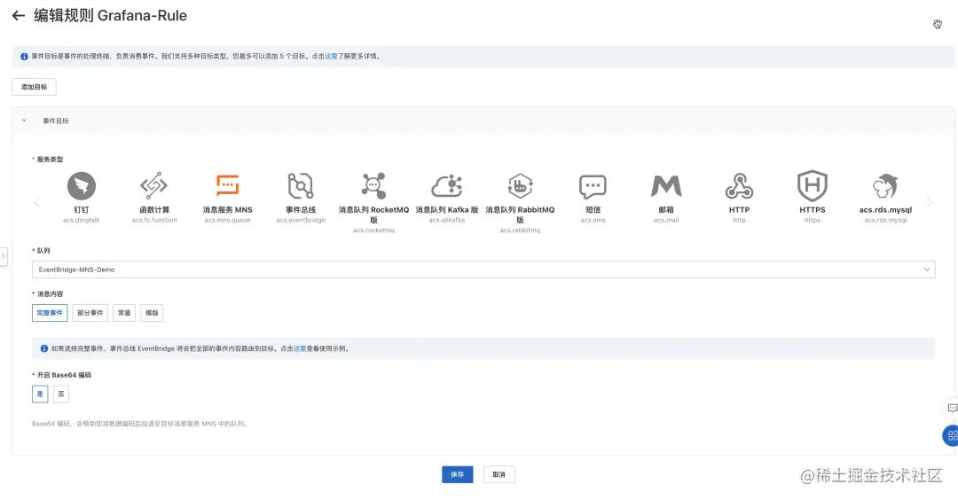 本节我们介绍如何使用 EventBridge 集成 Grafana,实现异步消费监控报警信息。Grafana 是一款开源数据可视化工具,也同时具有监控报警功能,具体使用可以参阅Grafana 官方文档**[2]**。本节主要包含以下步骤: